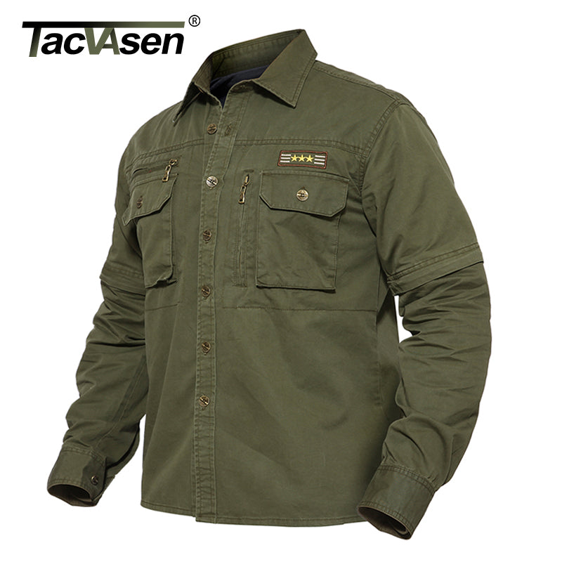 TACVASEN Light Weight Military Jacket Men Spring Cotton Jacket Coat Tactical Jackets Detachable Sleeve Cargo Coat TD-BJZS-002